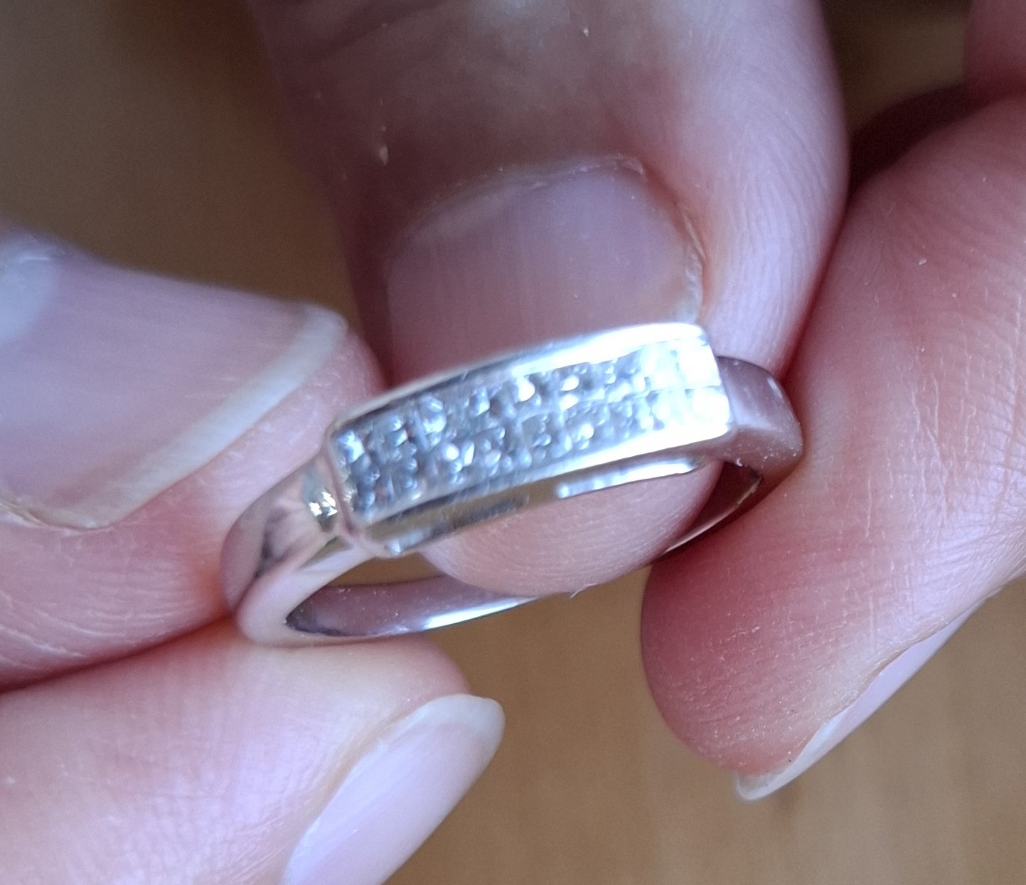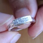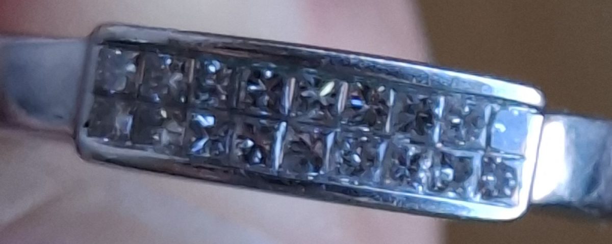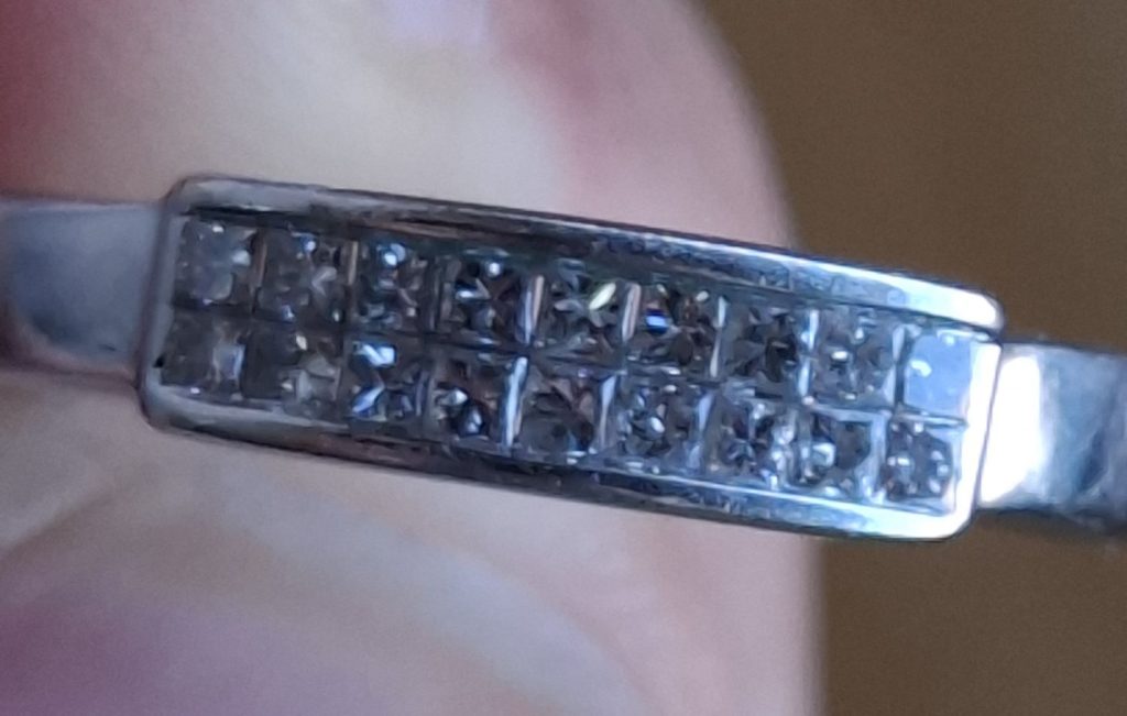 “ANEL” – Em ouro branco contrastado (19,2k), com as respetivas marcas de garantia do toque 0,800, trabalho português do séc. XX-XXI. Corpo cravejado por18 diamantes em talhe marquise interligados entre si, formando duas linhas de 9. Sinais de uso.