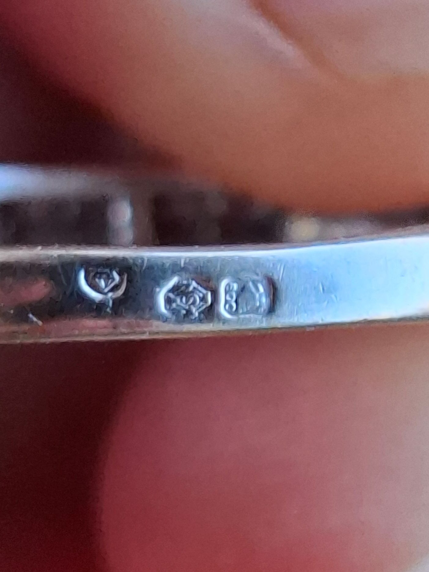 Nota: Cabeça de Veado 800 (pós 1985). e marca de contraste para peças de ourivesaria com pedras preciosas.Vemos 3 marcas no ouro branco, uma do fabricante, outra para o ouro (Cabeça de veado 800) e uma terceira marca de "diamante", para marcação como jóia.
