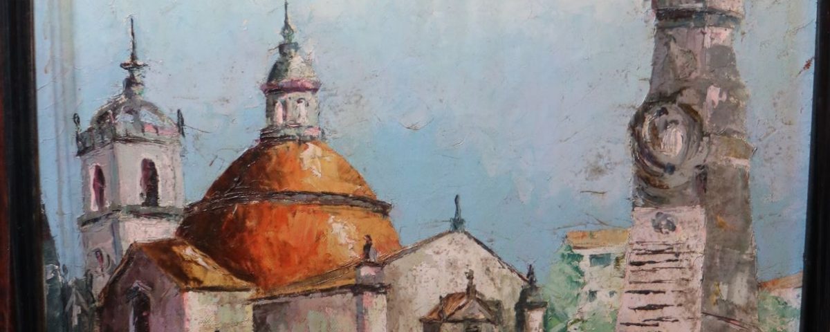 Pintura a óleo s/ tela «Sé de Sintra». Autoria de António Raposo.