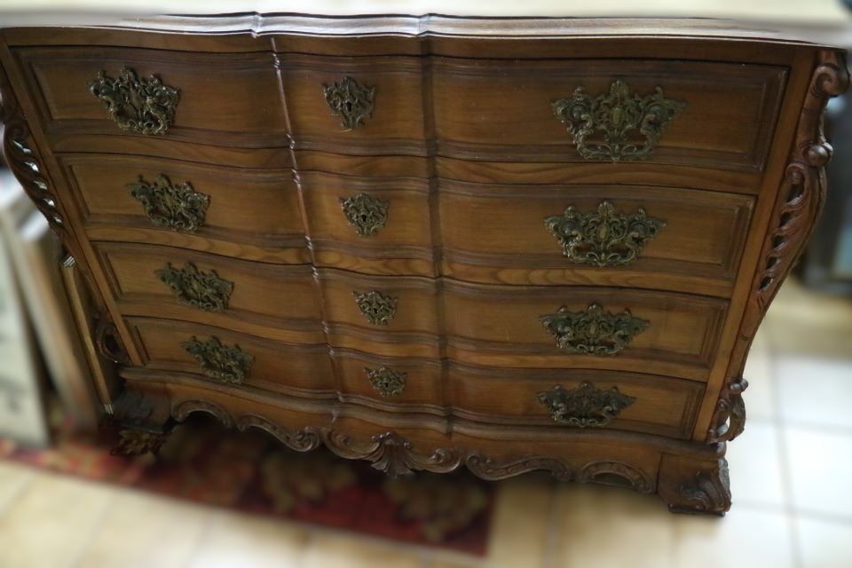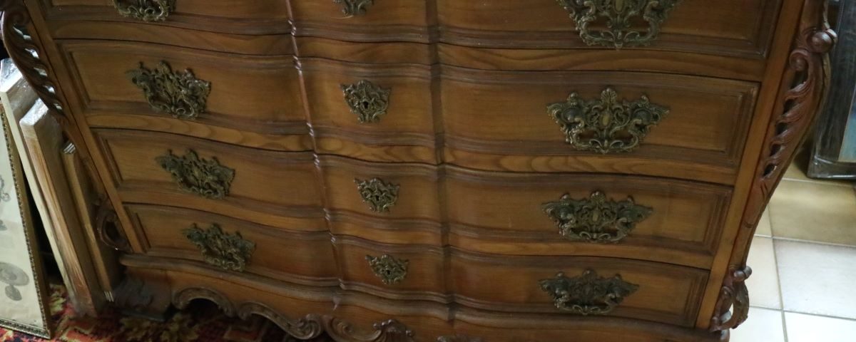 Cómoda em madeira de castanho com entalhamentos «rocaille».