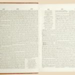 Encadernações inteiras de pele azul, com dois rótulos, nervos e ferros a ouro nas lombadas. Folhas de guarda em papel marmoreado. Exemplar com leve desgaste nas lombadas, manchas de oxidação e picos de acidez nos cortes das folhas, folhas preliminares e finais,