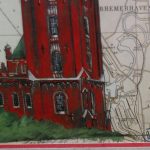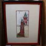 Quadro com litografia alemã, representação do «Dome Bremerhaven" refere-se a um farol com formato de cúpula, conhecido como "cebola" e localizado próximo ao zoológico "Zoo am Meer" em Bremerhaven, Alemanha. Emoldurado.