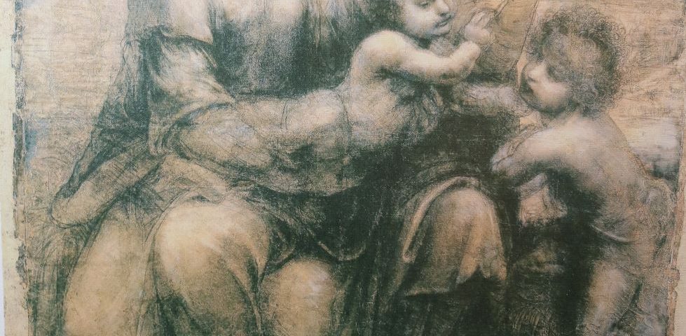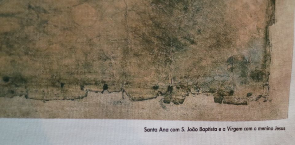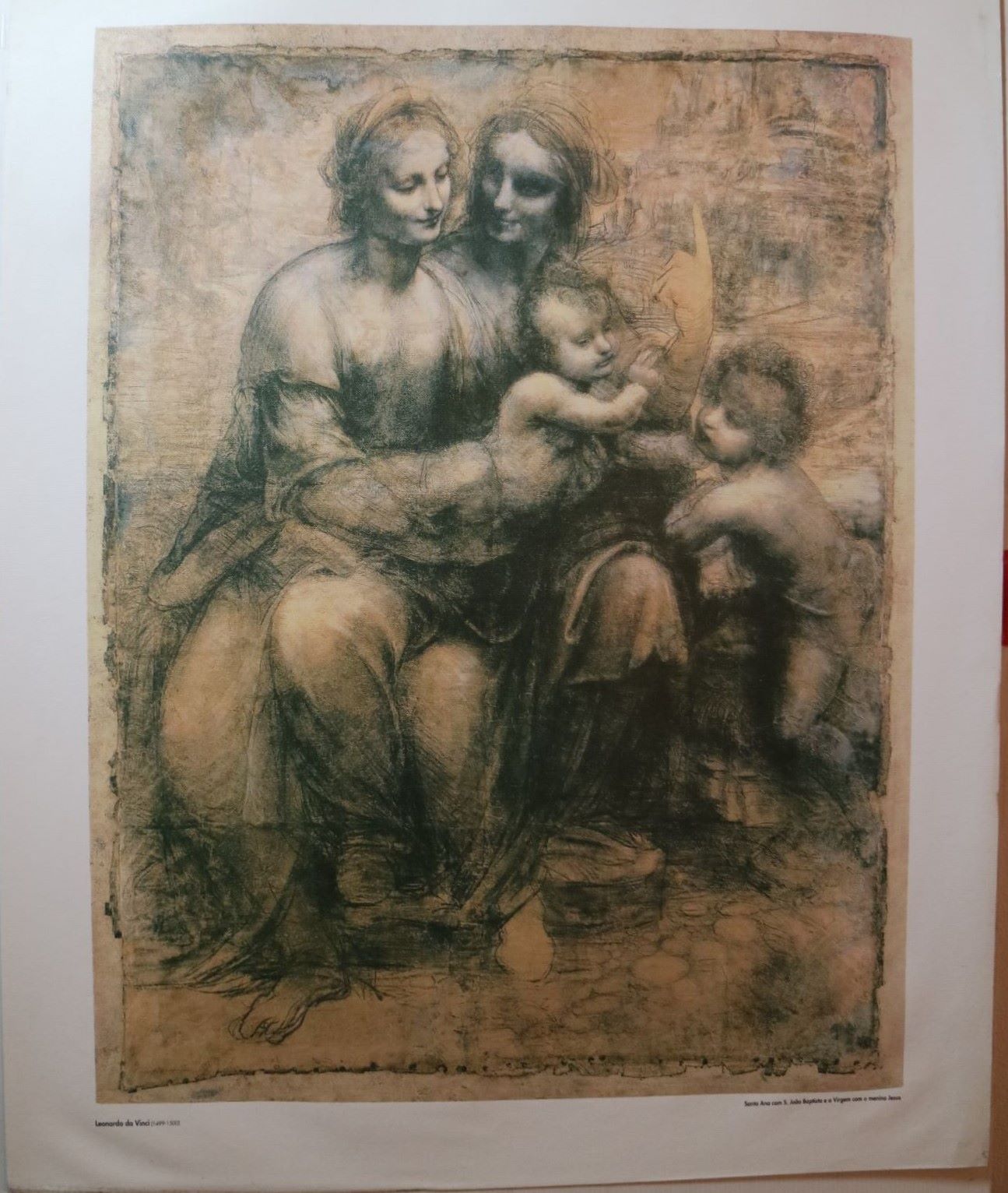Estampa com técnica de impressão em tela de «Santa Ana com São João Baptista e a Virgem com o Menino Jesus» (c. 1499/1500). Segundo original de Leonardo Da Vinci (1452-1519).