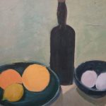 Desenho a guache sobre cartão intitulado «Mesa de Jantar na Aldeia».