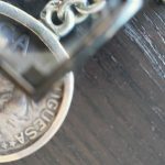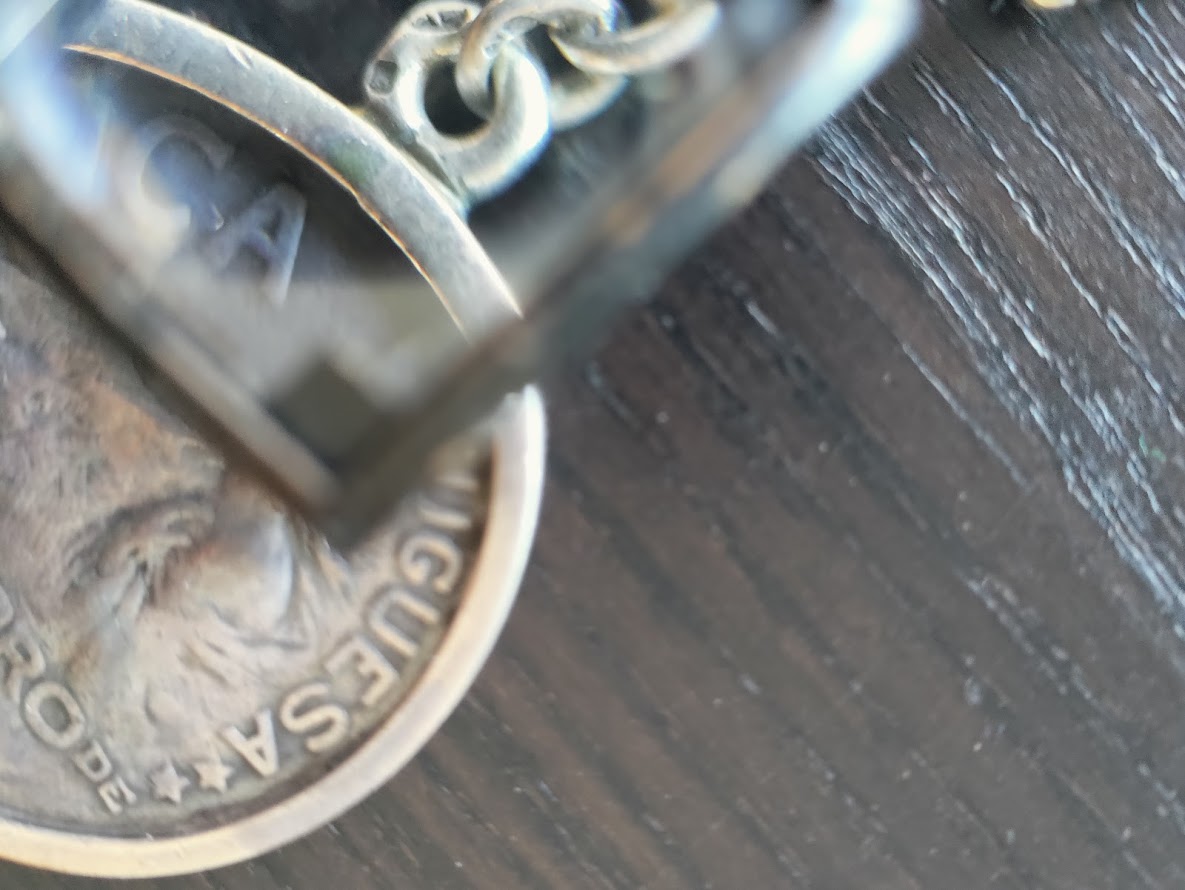 8,5 cm (total); 4 cm diam. (aro da moeda)